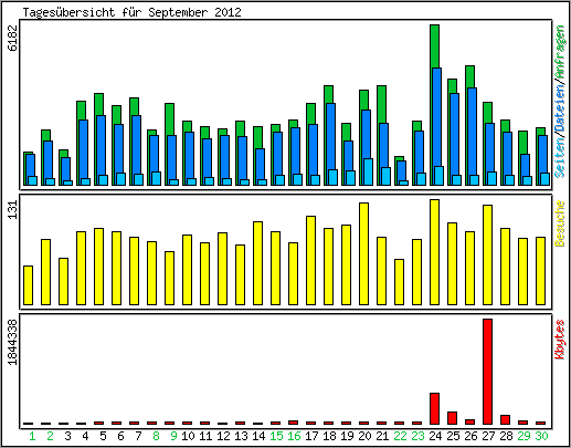| Tag | Anfragen | Dateien | Seiten | Besuche | Kbytes |